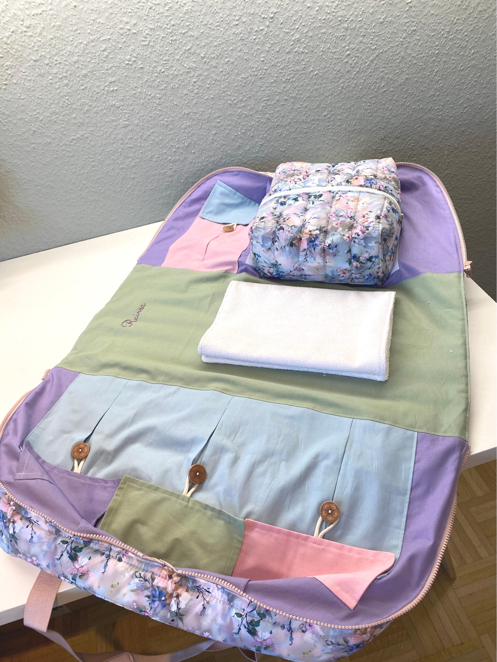 Borsone nascita da passeggino. Puo essere utilizzato come borsone e in altri momenti come fasciatoio. Il borsone che contiene tutto. Puó aprirsi interamente, dotato di spazio fasciatoio all interno. Contiene 4 tasconim, 1 beauty estraibile, un asciugamano, 2 tasche esterne. (vedi foto)